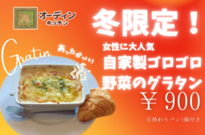 【オーディンキッチン】冬限定!女性に大人気「自家製ゴロゴロ野菜のグラタン」が登場!